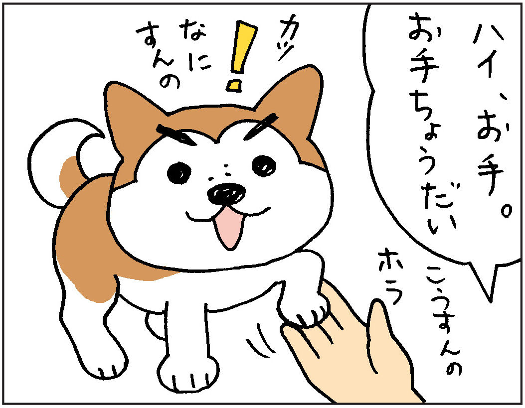 2016年07月17日 お手はイヤ! 特に必要を感じなかったのでナナに“お手” をおしえませんでした。でも何かコミュニケーション がほしいこともあります。そこで大人になった ナナに“お手” をおしえてみることに… 全然ダメ…。 ------------------------------------------------------------------------ お手数ですが、 ポチッと!一押ししてくださるとうれしいです。