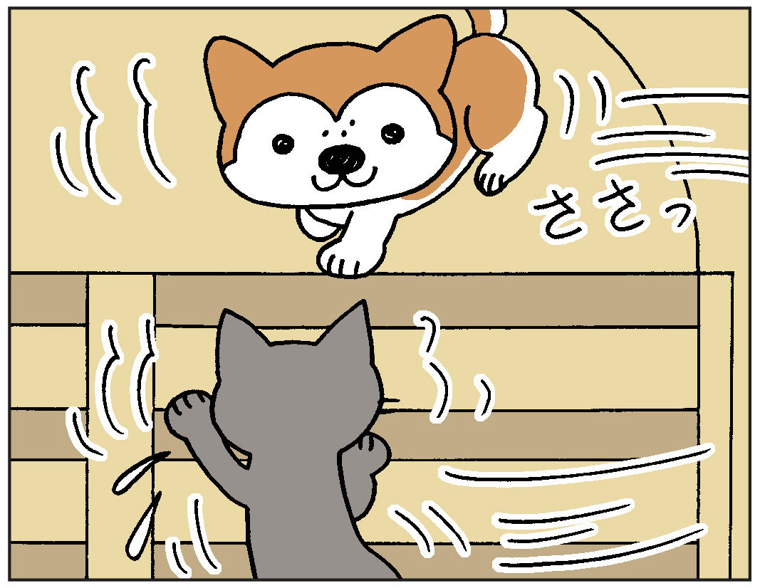 2017年10月02日 ナナのいじわる 階段の方からヨルの鳴き声がするので行ってみると…ナナが踊り場でとおせんぼしてヨルが上がって来れないでいました。ヨルがすき間からすり抜けようとすると、ささっと道をふさぐ…。ほんっとに、いじわるでもナナはヨルと遊んでいるつもりナナに声をかけると、とおせんぼをやめたフリで…階段の上に行き、懲りずに遊びを続けますでも、ヨルはナナの遊びにつきあっているヒマはないのでした------------------------------------------------------------------------ いつも応援ありがとうございます