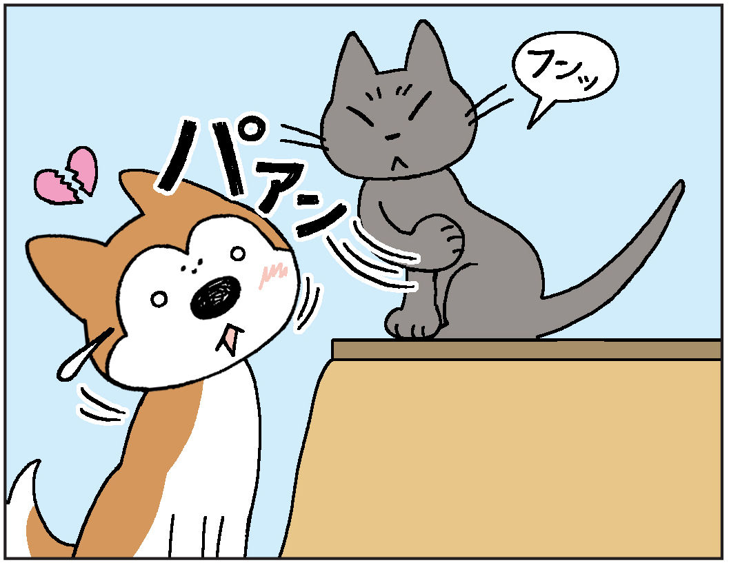 2018年01月19日 理由なきネコパンチ コタツの上にいたヨルのそばを通りがかっただけのナナ。あまりにも理不尽!!ナナ、何にもしてないよ「なんか、イラっとしたんで」(ヨル談)〜〜〜〜〜〜〜〜〜〜〜〜〜〜〜〜〜ペット情報サイトPECOにて「動物チームといっしょ」連載中。第11話↓ 毎週月曜日更新。 ------------------------------------------------------------------------ いつも応援ありがとうございます ----------------------------------------------------------------------------●こちらのブログもやってます